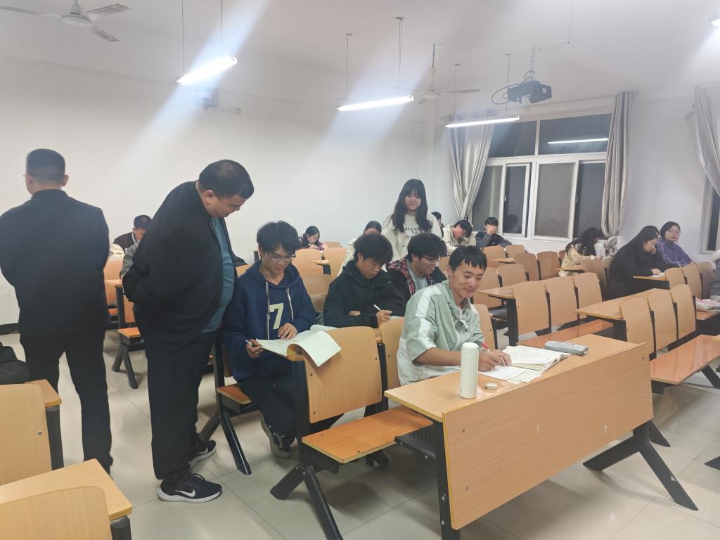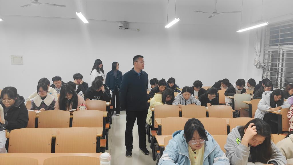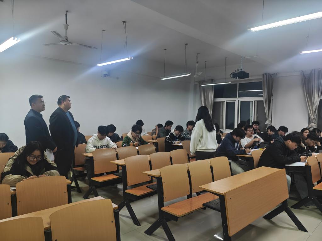检查过程中,老师们细致察看了同学们的自习状态,对同学们整体安静有序、专注投入的学习氛围给予了充分肯定。党总支书记徐远东与部分学生进行了亲切交流,仔细询问了大家在新学期的课程学习进度、遇到的困难以及对教学管理等方面的意见建议。他勉励同学们要珍惜宝贵的晚自习时光,明确学习目标,合理规划学业,注重培养自主学习能力和钻研精神,打牢专业基础,为未来的长远发展积蓄力量。学工干事徐超则重点关注了自习纪律与环境保障,并就如何进一步提高晚自习效率与在场学生干部进行了沟通。