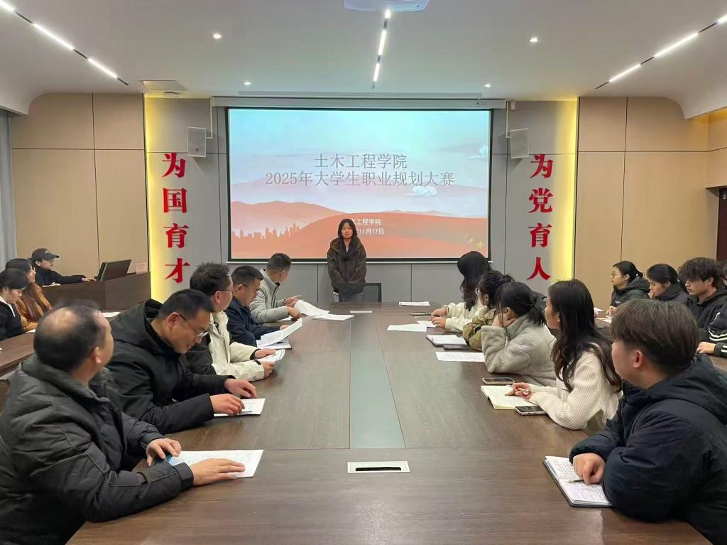 为进一步提升大学生职业生涯规划能力,引导广大学生树立正确的成才观、择业观,科学合理地规划大学学习与生活,提高就业技能与实践能力,11月17日下午,土木工程学院在理工楼112会议室成功举办了2025年大学生职业生涯规划大赛。学院学工干事徐超、团总支书记徐飞、单项工作负责人陈曼怡及全体辅导员担任了此次大赛的评委。