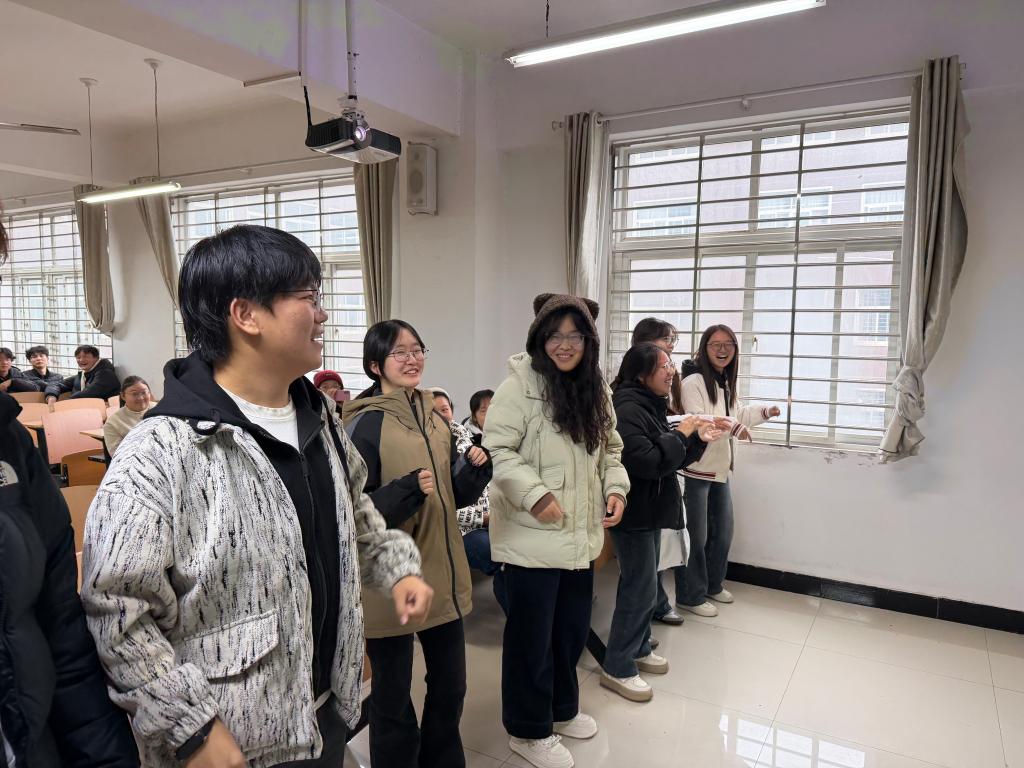为普及心理健康知识,缓解同学们在日常学习和生活中积累的压力,增进同学间的友谊与团队协作能力,11月17日,土木工程学院25人居本01班在理工楼402教室开展了以“从‘心’出发,快乐同行”为主题的心理团辅活动,辅导员陈曼怡及60余名同学共同参与了此次活动。通过趣味游戏和互动任务,让同学们在轻松愉快的氛围中打破隔阂,共同“升温”班级情感。
