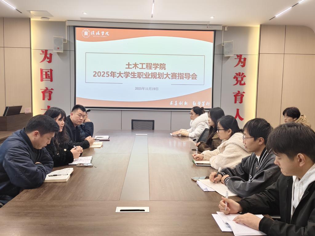为积极备战即将到来的校级、省级大学生职业规划大赛,全面提升我院参赛选手的综合竞争力与赛事水平,土木工程学院于11月19日中午在理工楼112会议室举办了职业规划大赛赛前专项指导会,团总支书记徐飞、教务员余根、辅导员陈曼怡、秦怡博老师参加了此次会议。