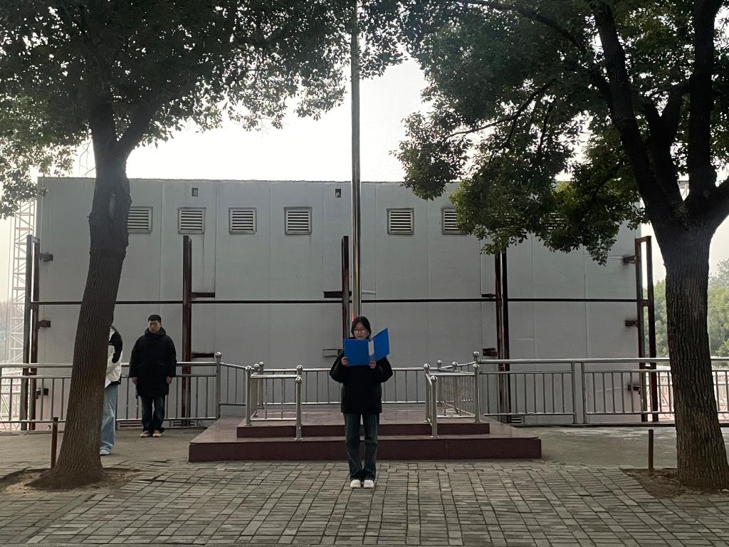 升旗礼毕,25智建本01班马静怡同学在国旗下发表主题为《铭记一二·九,永续爱国情》微宣讲。她呼吁同学们铭记这段历史,将先辈们的爱国情怀融入血脉、化为行动,以青春之我、奋斗之我,肩负起时代赋予的重任,在青春的赛道上奋力奔跑,让爱国精神在新时代绽放出更加璀璨的光芒!