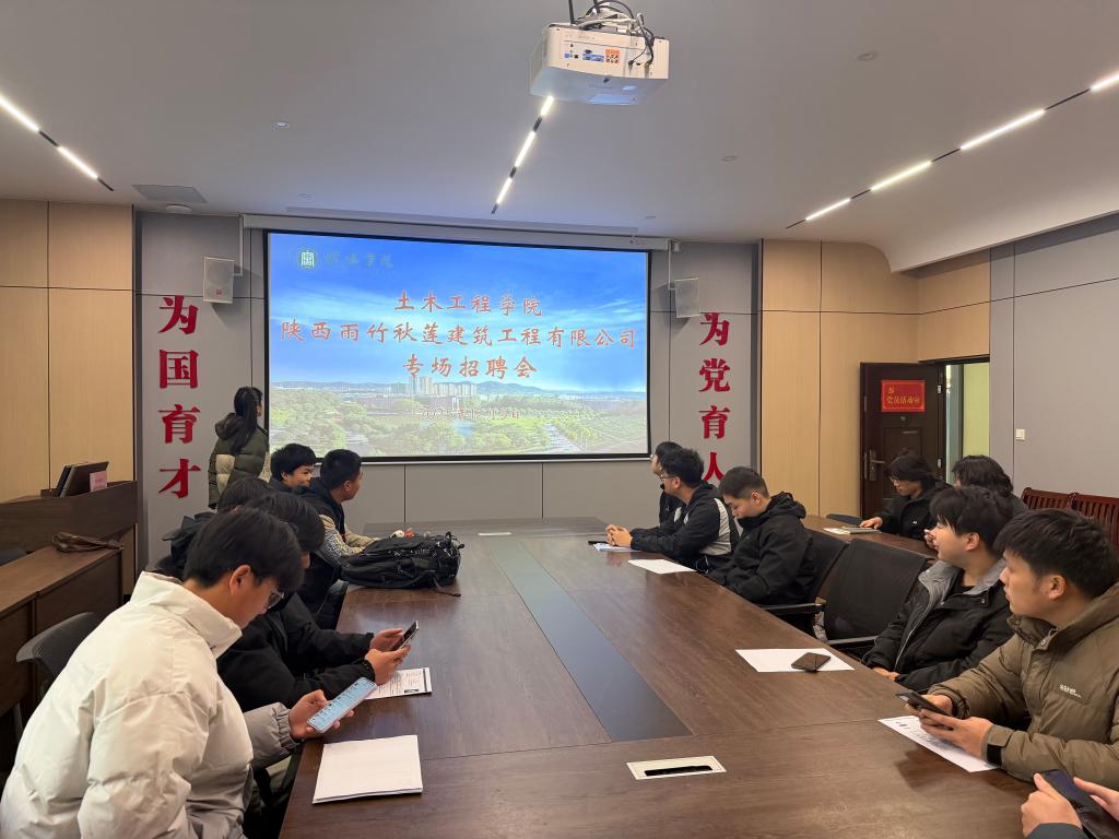 为了更好地促进2026届毕业生多渠道充分就业,12月5日中午,陕西雨竹秋莲建筑工程有限公司专场招聘会在理工楼112会议室举行。学院就业工作负责人陈曼怡及部分毕业生参加了此次招聘会。