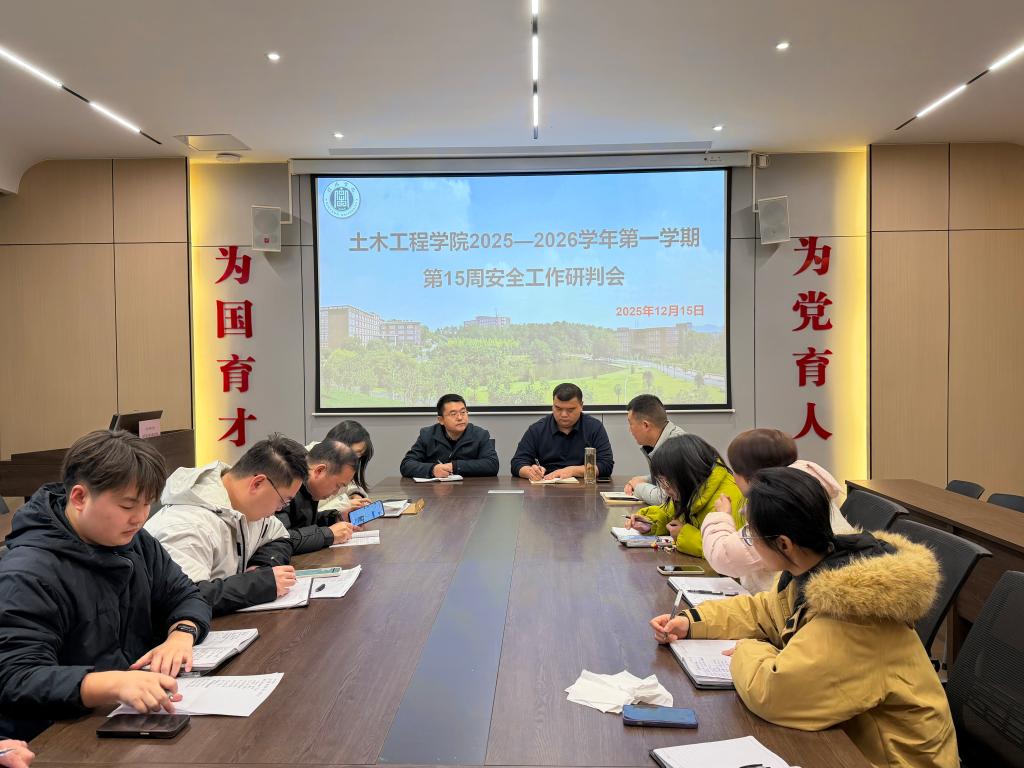 为持续深化平安校园建设,及时研判校园安全形势,部署落实各项安全防控措施,12月15日下午,土木工程学院在理工楼112会议室召开了第十五周学生安全工作研判会。学院党总支书记徐远东、学工干事徐超及全体辅导员参加了此次会议。徐超主持了会议。