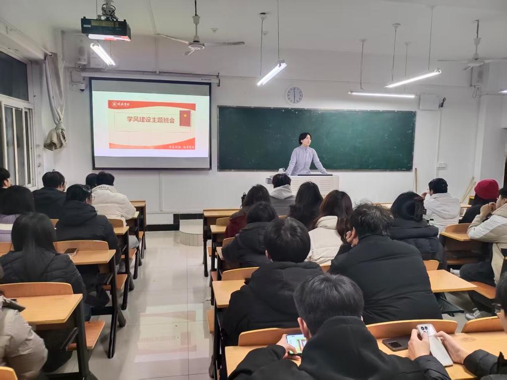 在各班会上,辅导员们紧扣“弘扬勤学精神,塑造卓越学风”的核心主题,结合不同年级学生的阶段性特点和实际需求,开展了具有针对性的教育引导。针对大一、大二年级学生,班会重点聚焦于学习习惯的养成、时间管理能力的提升以及诚信应试意识的强化,引导学生打下坚实学业基础,自觉遵守校纪校规。对于大三、大四年级及研究生同学,则侧重于学业深造规划、职业发展方向探讨、科研创新能力培养以及就业竞争力提升,帮助学生明确发展目标,优化学业路径。 班会形式多样,成效显著。