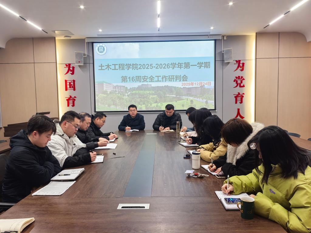 为全面加强学期末学生安全管理,确保学生安全和校园和谐稳定,12月24日上午,土木工程学院在理工楼112会议室召开了第十六周学生安全工作研判会。学院党总支书记徐远东、学工干事徐超及全体辅导员参加了此次会议。徐超主持了会议。