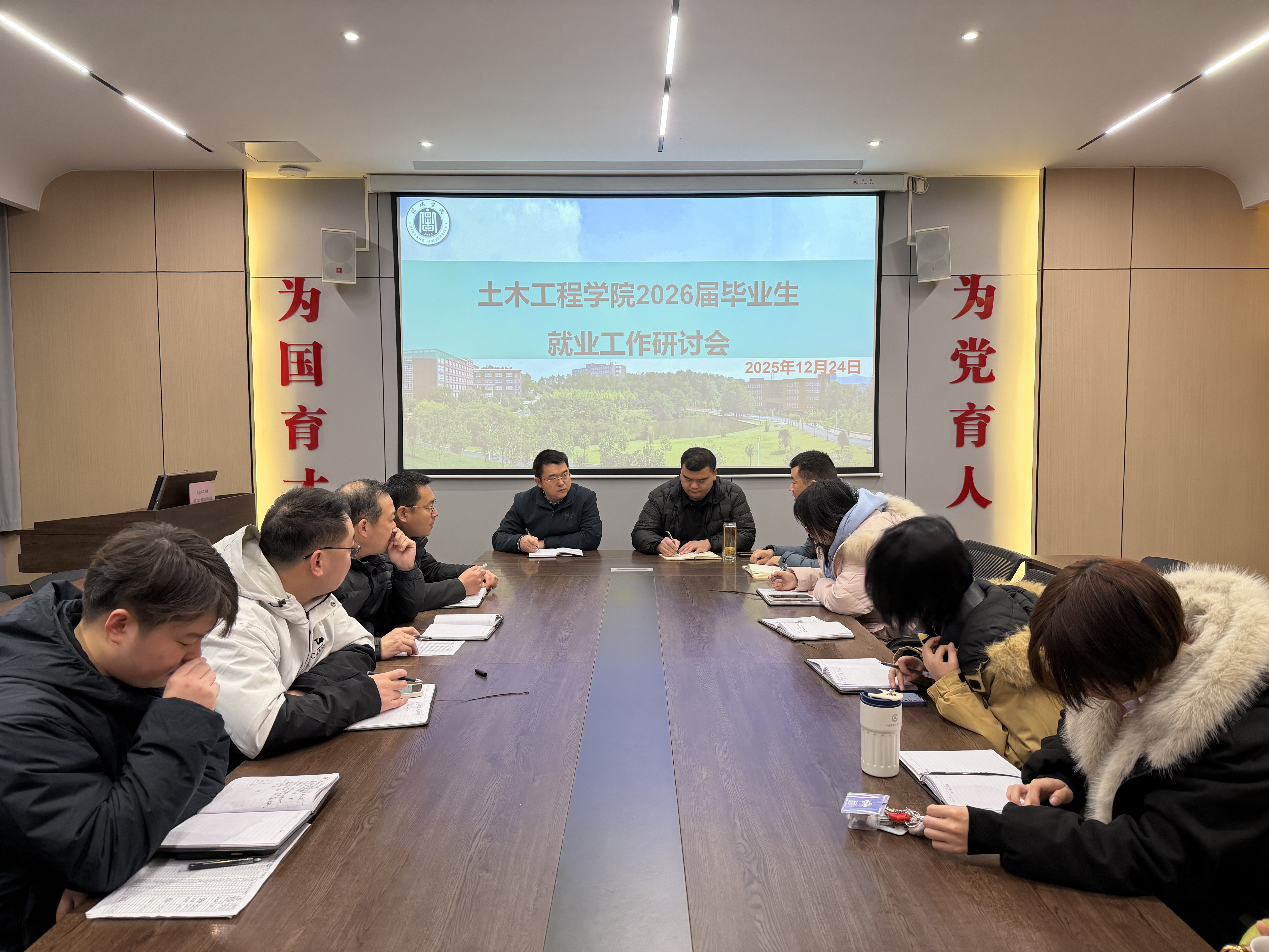 为积极响应学校就业工作部署,全面推进我院毕业生更充分、更高质量就业,12月24日,土木工程学院在理工楼112会议室召开了2026届毕业生就业工作研讨会,学院党总支书记徐远东、学工干事徐超、团总支书记徐飞及全体辅导员参加了会议。