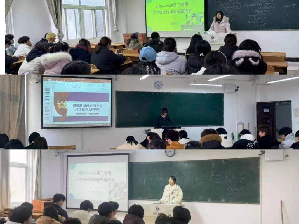 此次专题会议的召开,为学院新学期的安全稳定工作指明了方向,吹响了行动号角。会议结束后,全体辅导员迅速响应,积极落实。在接下来的几天里,各年级、各班级陆续组织召开了形式多样、内容扎实的防范网络电信诈骗主题班会。辅导员们精心准备,深入讲解,学生们认真聆听,积极互动,在全院范围内迅速掀起了学习防诈知识、提升安全素养的热潮,为共同构建“无诈校园”、护航学生成长成才奠定了坚实的基础。