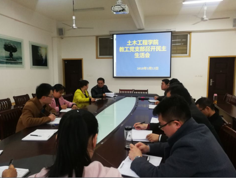 3月13日,土木工程学院教工党支部召开民主生活会,院总支书记潘卫国、教工支部书记郗利选及全体教师党员参加了会议。