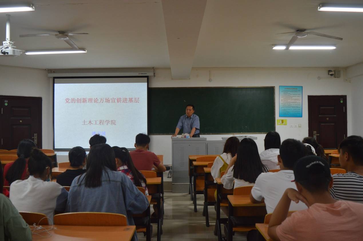 5月9日上午,土木工程学院党总支在理工楼312教室举行“党的创新理论万场宣讲进基层”首场宣讲活动,本此报告由该院党总支书记潘卫国主讲,该院2017级部分班级学生参加了宣讲活动。