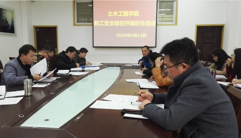 3月13日,土木工程学院教工党支部在理工楼201会议室召开组织生活会,学院党总支书记潘卫国、教工支部书记郗利选及全体教师党员参加了会议。