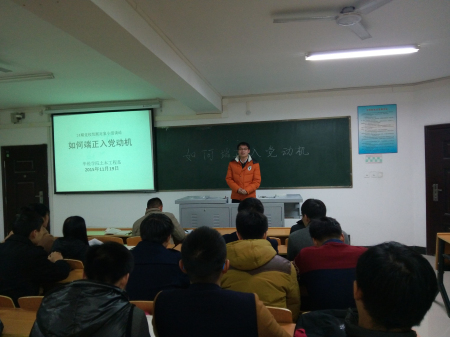 11月19日,土木工程系党员发展对象在理工楼311教室开展了以“如何端正入党动机”为主题的讨论活动,具体围绕“树立正确的入党动机的重要性”及“正确的入党动机基本要求”两方面进行了发言。此次活动让学员们深刻认识到成为一名优秀的共产党员要端正思想,热爱党、拥护党的政策,遵守党的规章制度,为能够早日成为一名优秀的共产党员而努力奋斗。