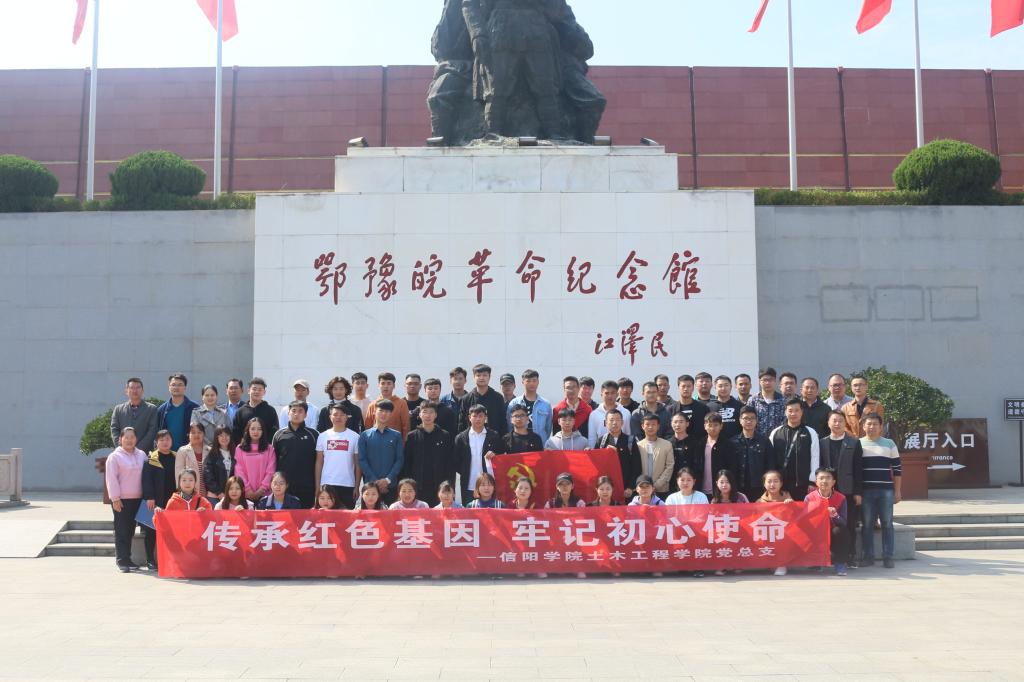 为深入开展“不忘初心,牢记使命”主题教育活动,进一步强化党员干部党性观念,激发党员实干精神。10月17日中午,土木工程学院党总支组织师生党员赴信阳市鄂豫皖革命纪念馆开展“传承红色基因、牢记初心使命”主题党日活动。党总支书记潘卫国及全体师生党员参加了活动。