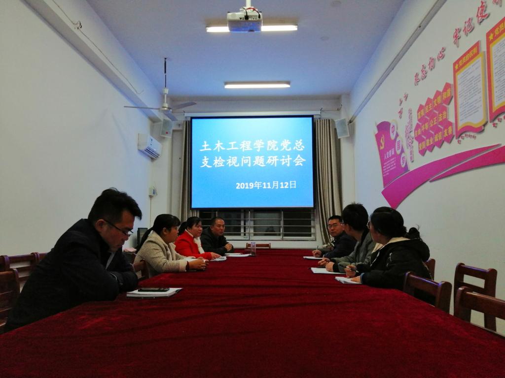 11月12日,土木工程学院党总支在理工楼112会议室召开了检视问题研讨会,院党总支书记潘卫国、总支委员郗利选、徐超、王亮、方超、教工支部书记郗利选、学生党支部书记唐辉、吴琼茹参加了会议。