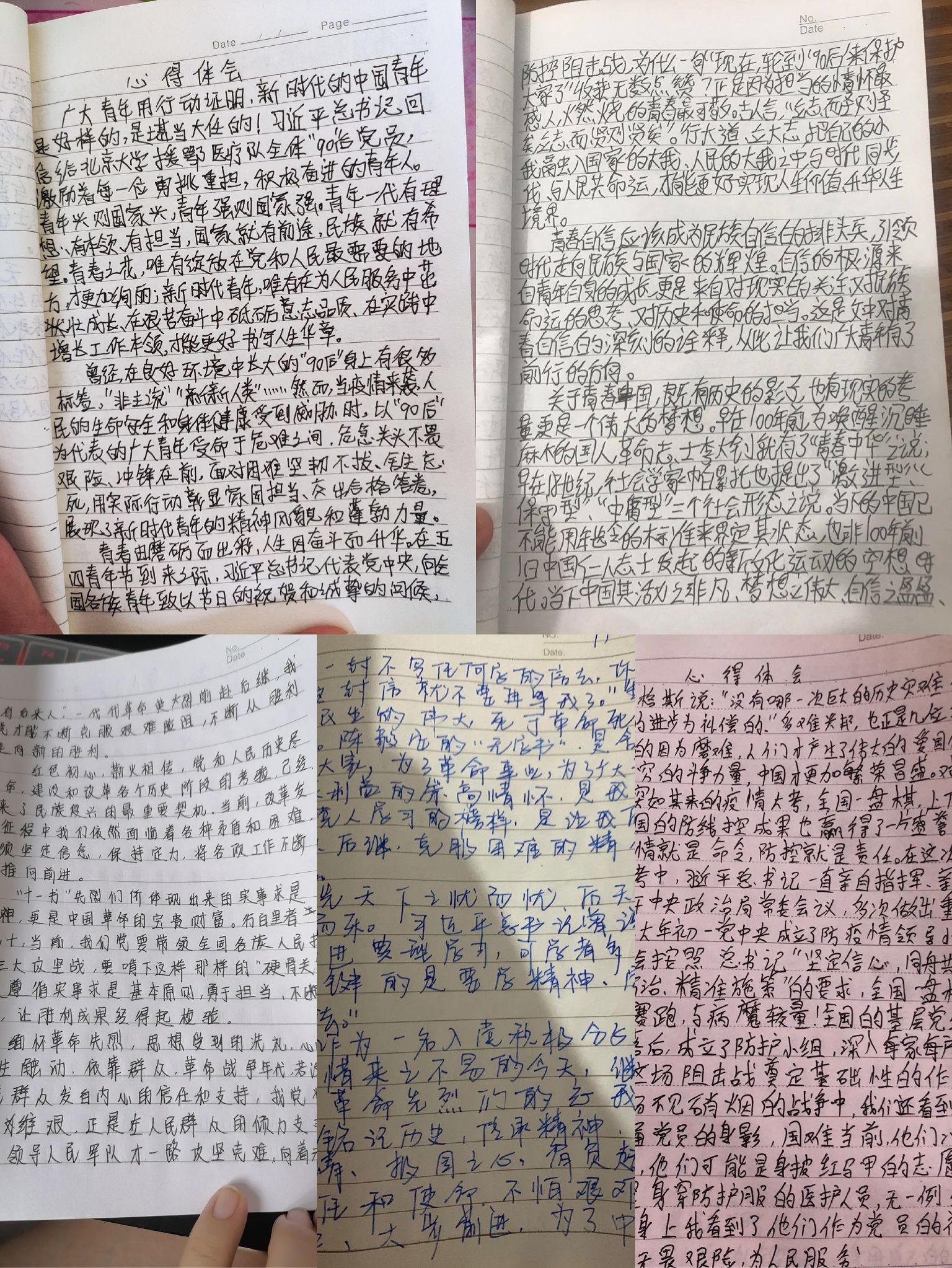 这场突如其来的疫情,让全国上下十四亿人感受到病毒的无情,但同时也看到了全国上下一心,共同抗疫的感人场面,也看到了共产党员在面对国家民族危难之际冲锋在前、个人在后的奉献精神。面对这场疫情防控阻击战,大家克服种种困难,迎难而上,配合工作人员做好社区和村口的志愿服务者的工作,践行初心使命,勇于担当作为,展现出大学生们应有的风采与担当。