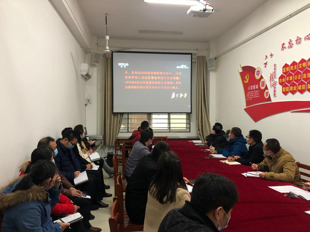 视频学习会上,教工支部书记郗利选传达了学校《关于组织全体教师观看大型电视纪录片<为了和平>》的通知文件精神,简要介绍了记录片《为了和平》主要内容及专题学习的背景及主要意义。随后全体教师共同观看了《为了和平》纪录片,革命先烈们不畏困难,顽强作战的事迹感染了在场的每一位同志,同时也激励着大家,反思自己所处的时代,更加坚定了为党和国家培养社会主义接班人的理想和信念。