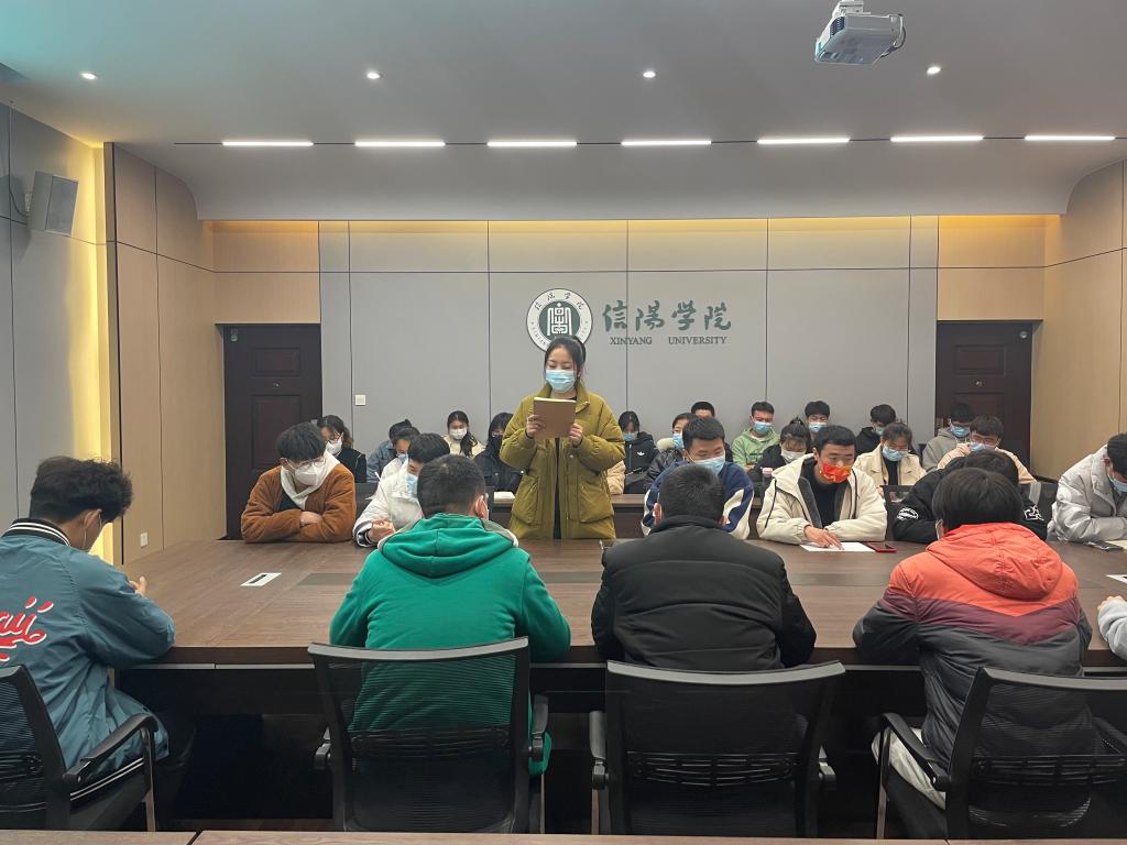 学工干事徐超对学生干部提出两点要求:一是在疫情形势严峻的情况下,学生干部们要起到带头作用,积极配合并落实学校各项疫情防控工作;二是在日常学习生活中,要求大家争做先进,并以先进带后进,充分发挥学生干部的先锋模范作用。