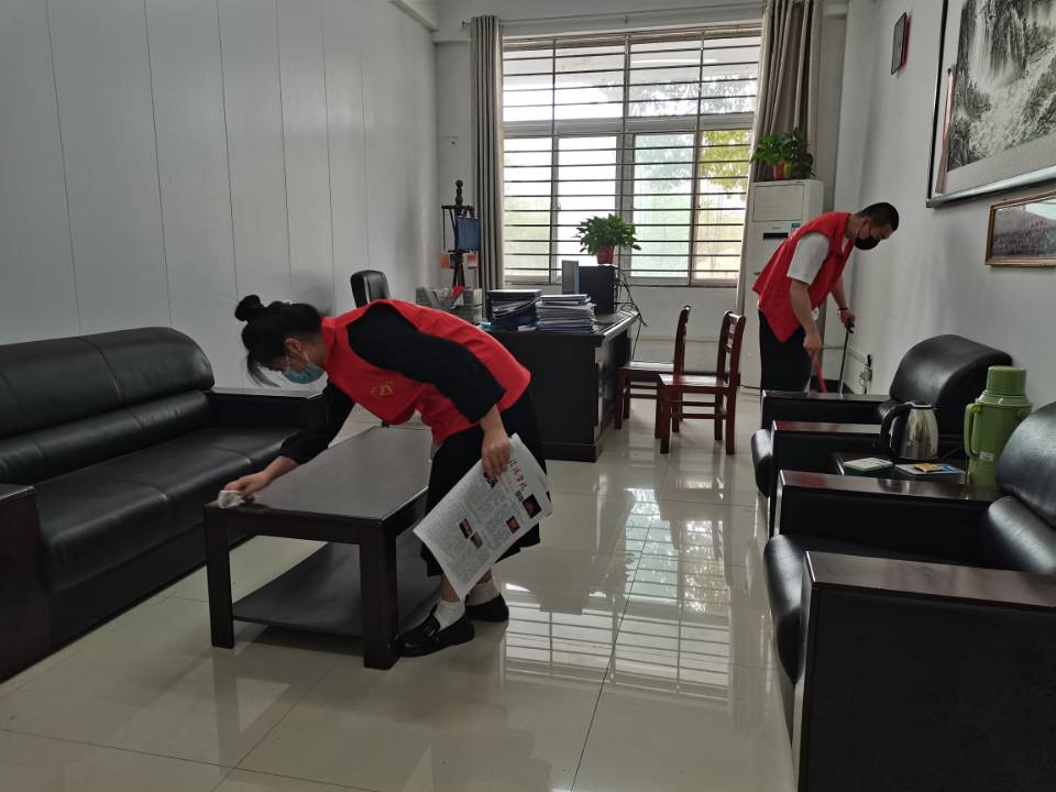 活动中,成员们以实际行动发挥模范带头作用。他们拿着扫把、拖把、抹布等劳动工具,对办公桌、擦窗户、栏杆、地面等进行清洁,认真打扫每一个卫生死角。大家干劲十足,人人争先,发扬了不怕脏、不怕苦、不怕累的劳动精神。在打扫过程中,大家以高昂的热情投入到了此次活动中,权责分明,各司其职。经过大家的认真打扫,办公室变得干净、美丽、整洁。