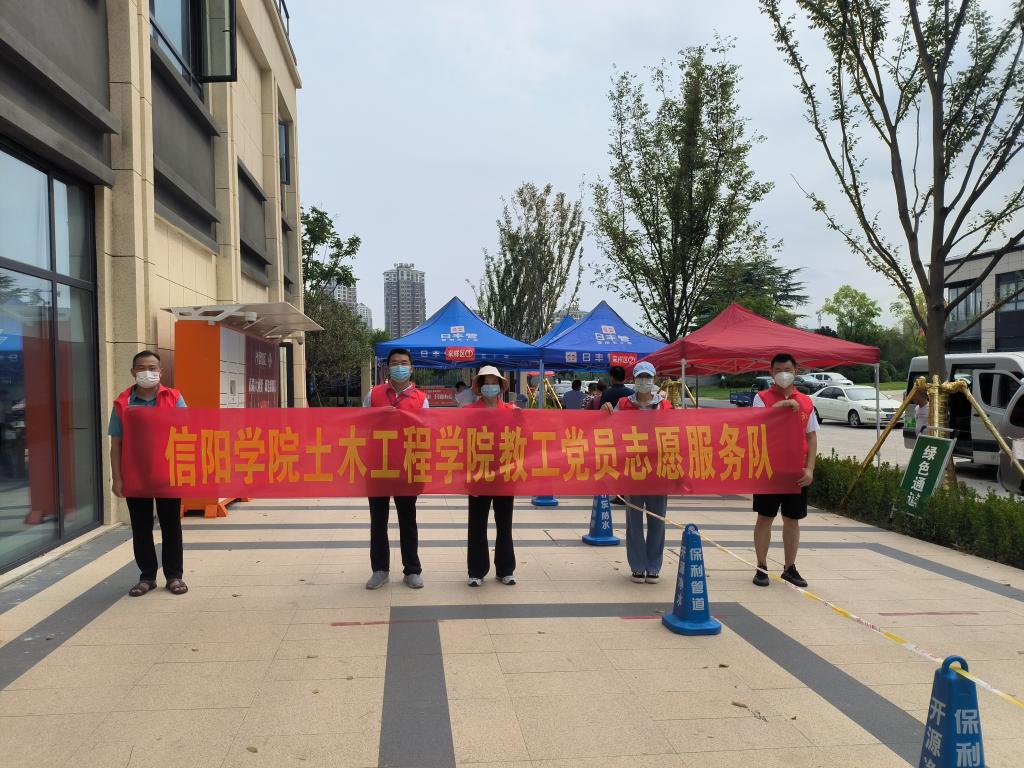 为进一步发挥文明单位的示范引领作用,全力做好创建文明城市工作,助力“美好生活看信阳”,8月20日上午,土木工程学院教工党支部5名教工党员志愿者深入琵琶山社区开展“支部联支部”核酸检测志愿服务活动。