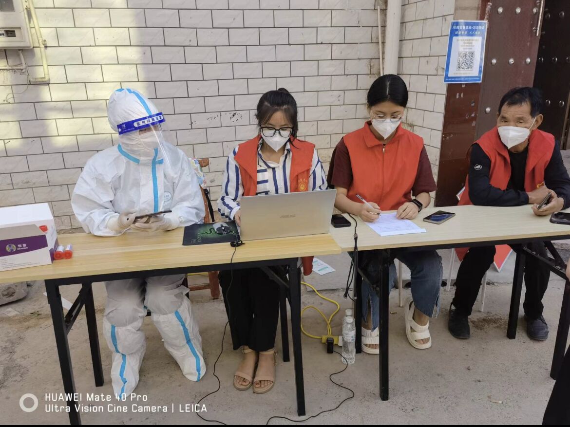 面对疫情复杂形势,为保障人民群众生命财产安全,刚返回家乡的土木学子就冲在疫情防控志愿服务前线。2022年8月,受疫情传播链波及,家住洛阳市伊川县的任晶媛同学积极向社区报名,参加疫情防控工作,核实参与核酸采集的居民信息,确保样本检测出现异常时能快速联系到当事人,为当地的疫情防控工作贡献一份力量。