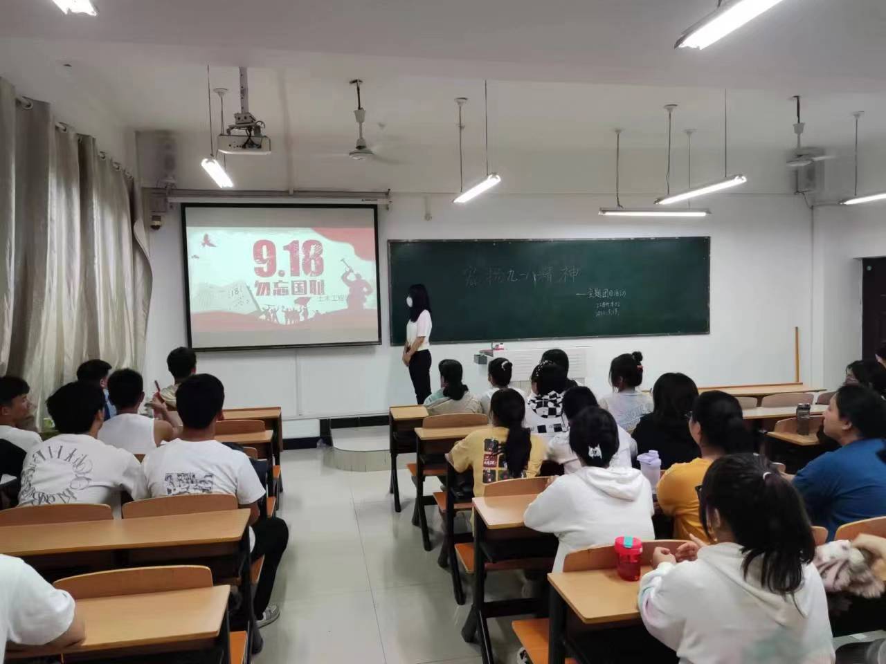 会后各班团支书按照要求组织各班同学在理工楼多媒体教室采用PPT展示与视频相结合的方法,对“九一八事件”进行了回顾与学习,以此激发同学们的爱国主义精神,铭记历史、不忘国耻,砥砺前行,不负使命。