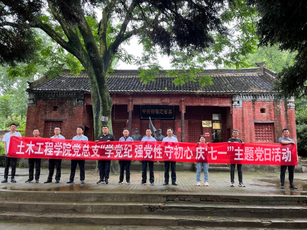 为庆祝中国共产党成立103周年,进一步弘扬伟大建党精神,推动党纪学习教育走深走实,2024年7月5日,土木工程学院党总支组织教工党员赴邢集镇尖山革命纪念馆开展“学党纪、强党性、守初心、庆‘七一’”主题党日活动。
