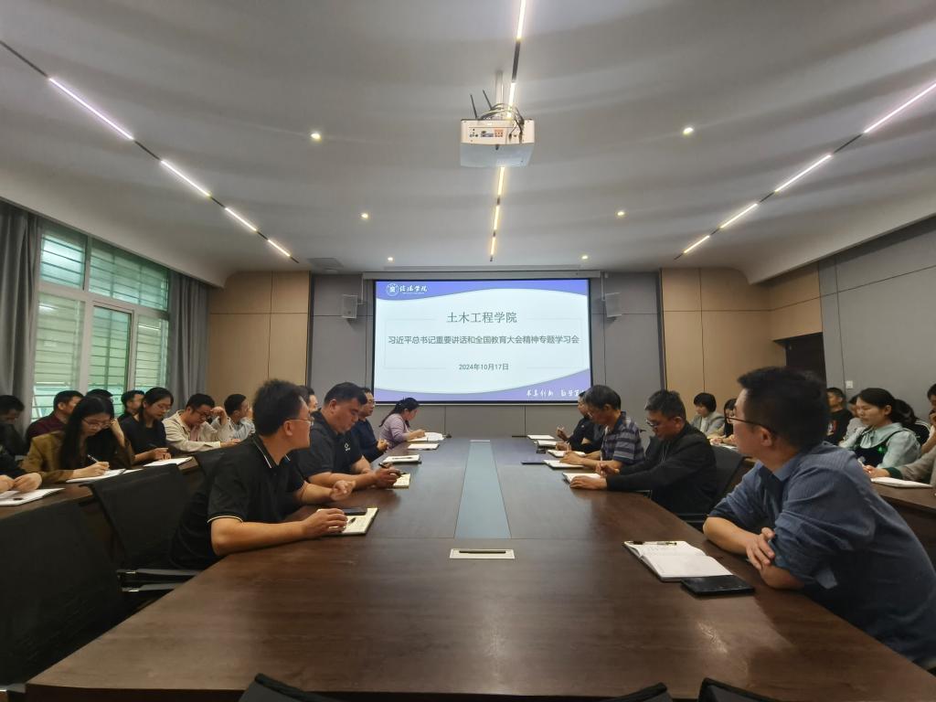 为深入贯彻落实《中共中央国务院关于弘扬教育家精神加强新时代高素质专业化教师队伍建设的意见》精神,引导教师将教育家精神转化为思想自觉、行动自觉,做新时代好教师。10月16日下午,土木工程学院在理工楼112会议室召开了“学习贯彻习近平总书记重要讲话和全国教育大会精神”专题学习会。学院领导班子及全体教工参加了学习会。