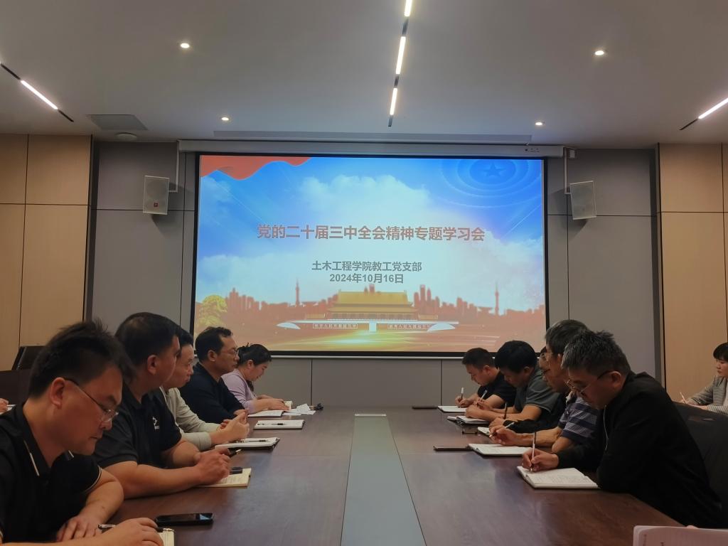 10月17日下午,土木工程学院在理工楼112会议室召开了“党的二十届三中全会精神”专题学习会,学院党总支书记徐远东、教工党支部书记郗利选及全体教工参加了此次会议,会议由郗利选主持。