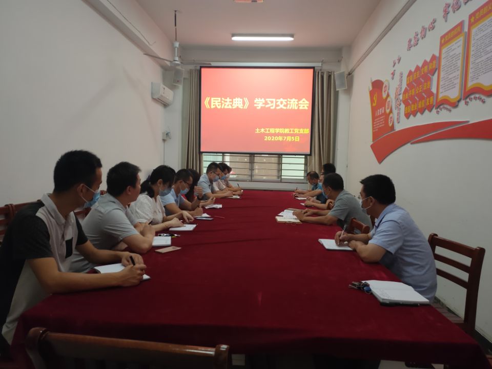 7月5日上午,土木工程学院教工党支部组织返校党员在理工楼112党员活动室召开了《中华人民共和国民法典》学习交流会,院党总支书记潘卫国和教师党员一起进行了学习交流。