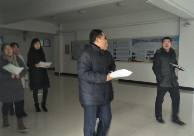 2月25日,土木工程学院鲍院长、党总支书记潘卫国、行政秘书郗利选、学工干事徐超及全体辅导员一行深入教室课堂,普查了教师上课及学生出勤情况。