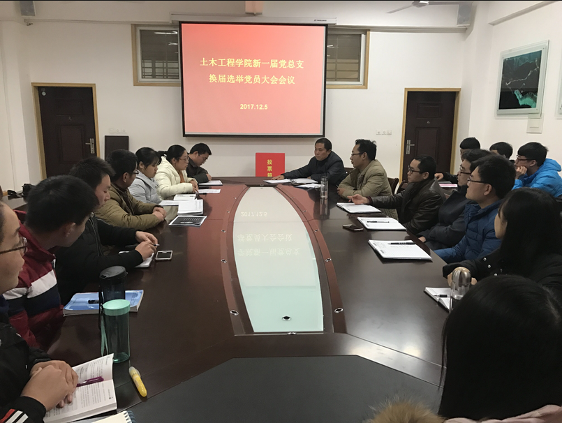 12月5日下午4:30,土木工程学院党总支在理工楼201会议室召开了新一届党总支换届工作会议,该院党总支委员王亮、李星、潘兵远、学生支部书记吴琼茹、唐辉及全体教工党员和部分学生党员代表参加了会议。会议由唐辉同志主持。