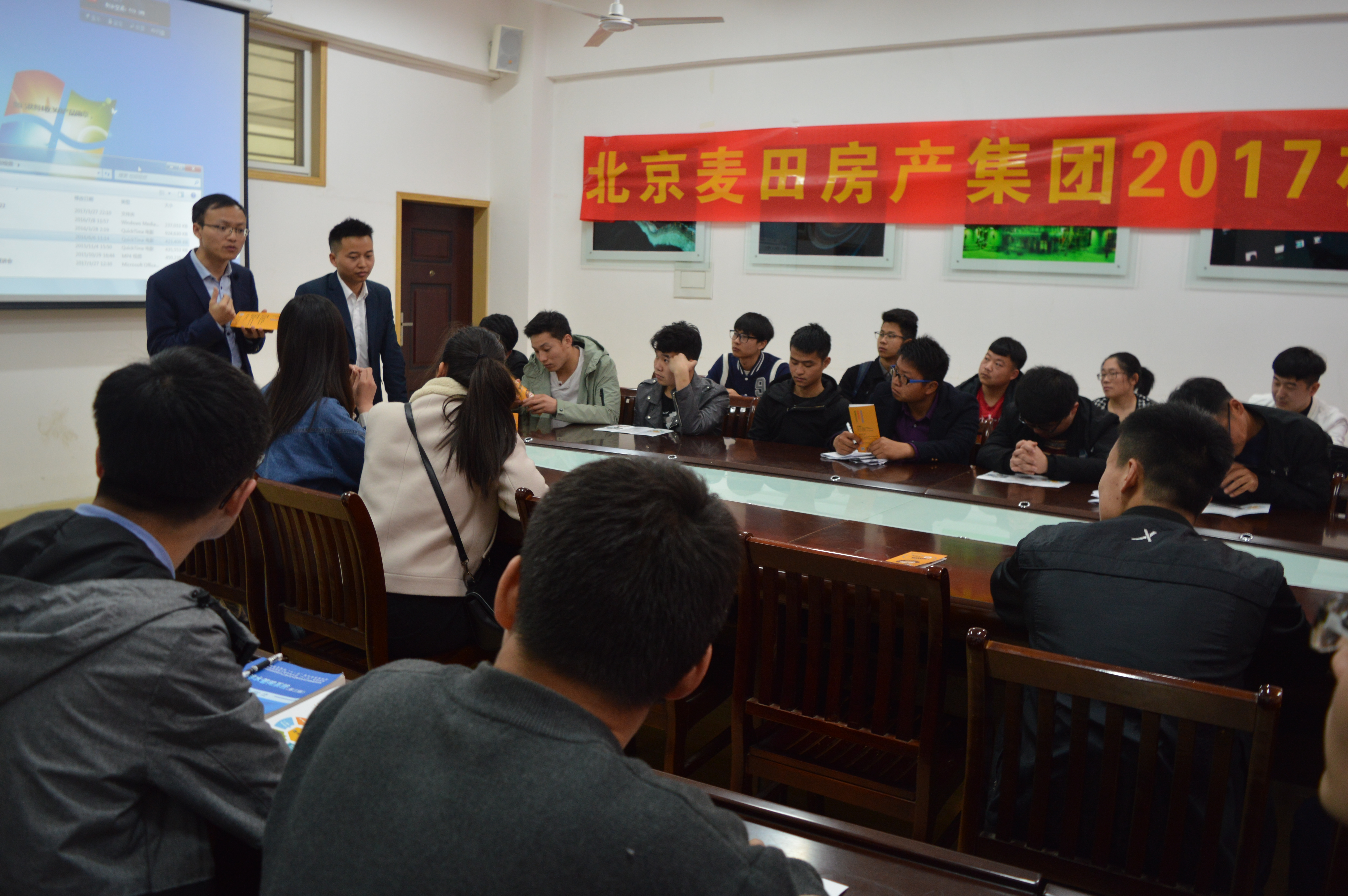 3月29日上午,土木工程学院在理工楼二楼201会议室组织开展了“北京麦田房产集团2017年校园招聘会”,参加会议的有北京麦田房产集团陈经理、学工秘书郗利选老师、2013级辅导员潘兵远老师、2014级辅导员唐辉老师及2013级部分毕业生。