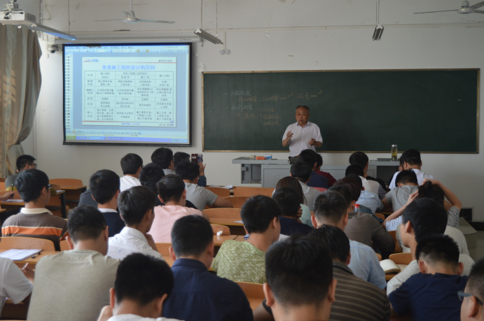 5月17日下午,土木工程学院在理工楼506教室举行分部分项工程施工组织设计研讨报告会,该院施工组织设计专家徐伯荣教授主讲。该院院长王钢城,部分教授和青年教师,100余名毕业班学生参加了报告会。