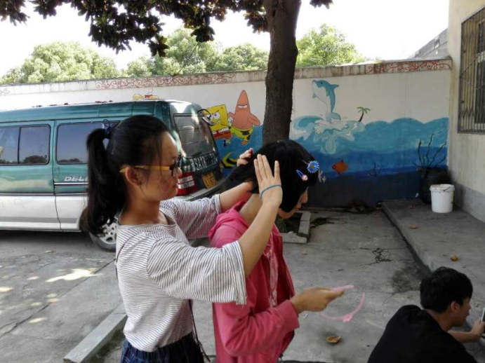 在该福利院工作人员的热情带领下,学子们参观了福利院的宿舍、教室、活动室等生活场所,了解了孩子们的日常学习和生活状况。虽然他们中大多数患有先天残疾,但都非常乖巧懂事,见到同学们亲切地喊着哥哥姐姐。学子们和这群可爱的孩子们很快的打成了一片:有的为孩子们梳洗打扮;有的和孩子们一起自拍,记录下美好的时刻;有的一起做游戏进行互动。