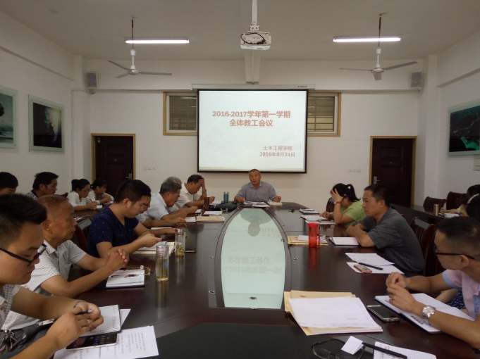 8月31日下午,土木工程学院在理工楼会议室召开2016-2017学年新学期全体教工会议。会议由行政干事闫珍珠主持。