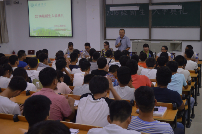 9月5日晚,土木工程学院新生入学典礼在人文楼106教室隆重举行。院长王钢城教授、学工秘书郗利选、教学干事王亮、行政干事闫珍珠、团总支书记潘兵远、各位新生辅导员出席了典礼。闫珍珠主持了入学典礼,全体2016级新生参加。