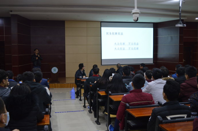 孟祥龙首先为大家解读了“大众创业,万众创新”的双创理念,创新创业的背景及国家鼓励高校创新创业的重要意义。他还详细介绍了我校鼓励在校生进行“双创”的优惠政策,以及目前我校众创空间的运营,他建议同学们能把握机遇,积极投身到创新创业中去。