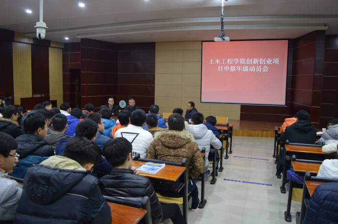 近日,土木工程学院分别对大二、大三年级举行了创新创业项目申报年级动员会。院长王钢城、副院长潘卫国、特邀嘉宾我校创新创业中心的负责人孟祥龙,理工学院学工秘书陈俊,各秘书、干事、辅导员,及各年级全体学生参加了动员会。