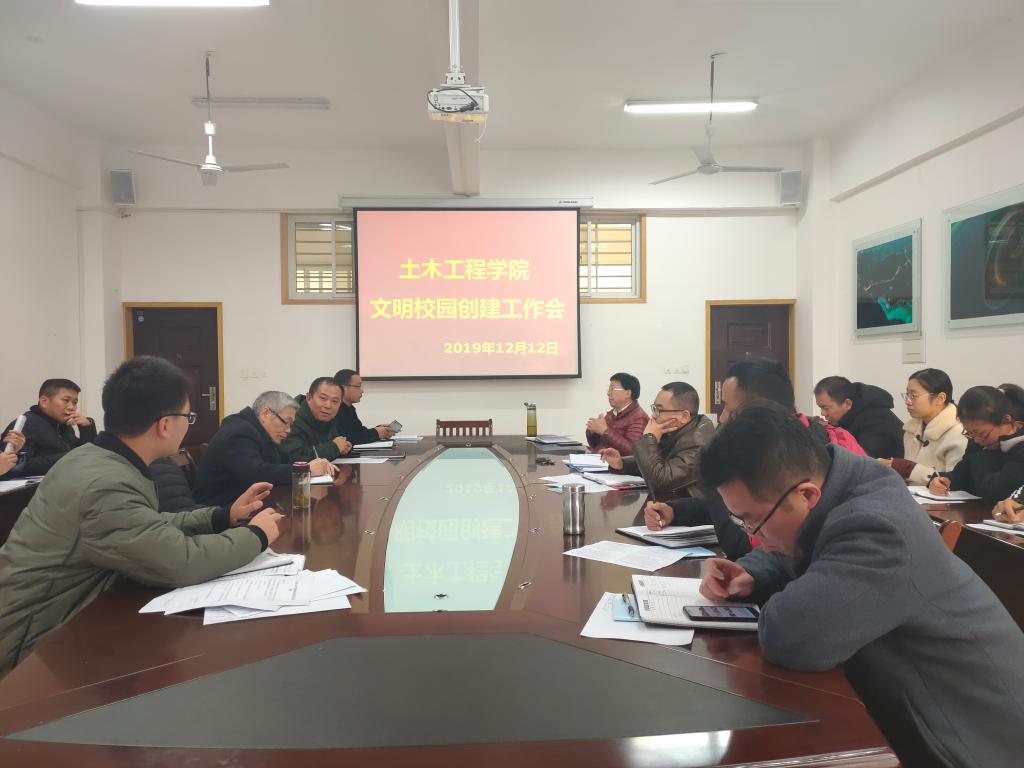 12月12日下午,土木工程学院文明校园创建工作会议在理工楼201会议室召开。学院总支书记兼副院长潘卫国及全体教工参加了会议。