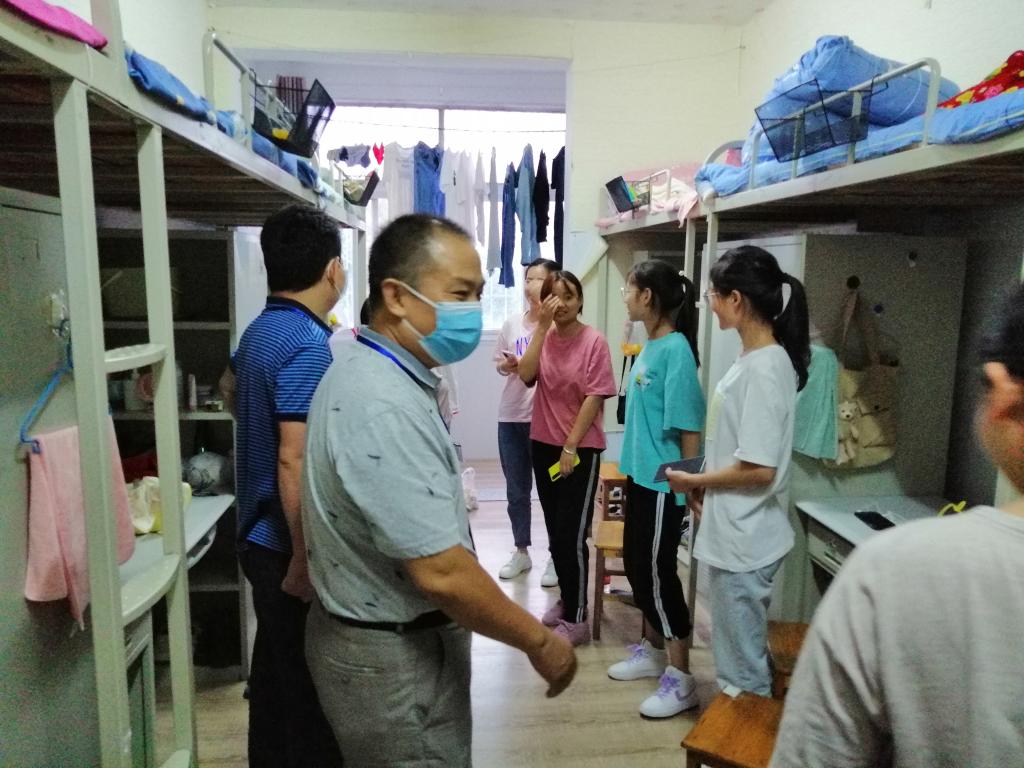 他们走进学生宿舍,亲切地询问了同学们来自哪里,对大学生活是否适应等问题,与新生进行亲切交谈,对新同学的到来表示热烈的欢迎,并对同学们提出了要求,第一,要多注意人身和财产安全,谨防电信诈骗等;第二,时间过的很快,大学四年生活稍纵即逝,希望同学们把握好大好年华,不断提高自己的综合技能;第三,要求同学们遵守学校和宿舍安全管理规定,不使用违规电器,提升安全意识,同时遇到问题和困难要及时向辅导员报告,寻求帮助。