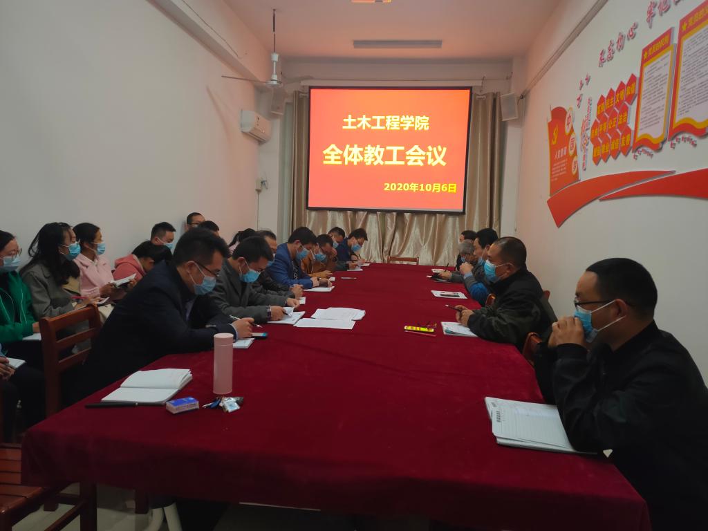 10月6日下午,土木工程学院全体教工会议在理工楼112会议室召开,学院领导班子、各特聘教授及全体中青年教师参加了会议。
