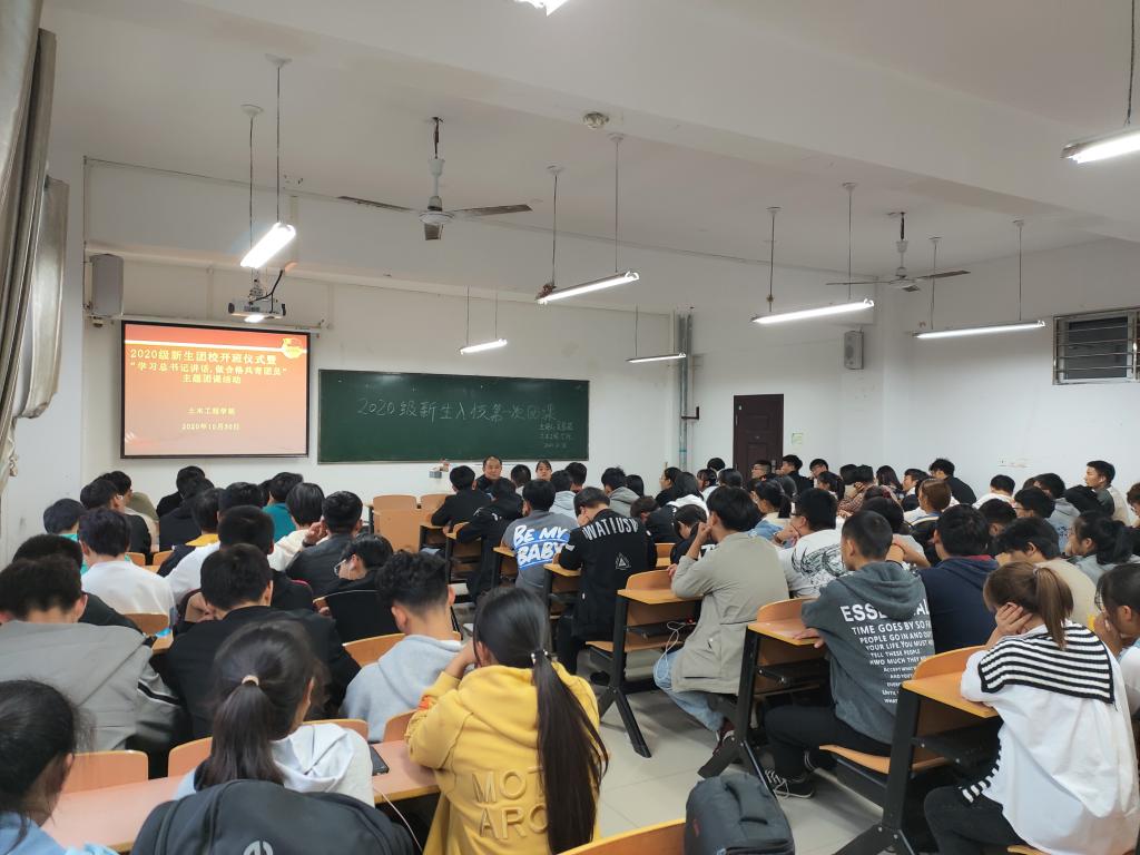 为深刻领会习近平总书记对广大青年的寄语精神,全力落实“全团抓思想政治引领”的工作部署,增强团员意识,不断提升我院广大团员青年的思想政治理论水平和政治素养, 10月30日下午,土木工程学院团总支在理工楼402教室开展了2020级新生团校开班仪式暨“学习习近平总书记讲话,做合格共青团员”主题团课活动。该院党总支书记潘卫国、团总支书记吴琼茹和新生共青团员参加了本次活动。