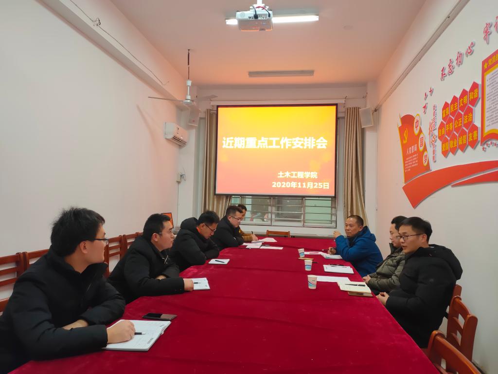 11月25日下午,土木工程学院重点工作安排会在理工楼112会议室召开,校长助理杨高伟受邀出席了会议,学院名誉院长、副院长潘卫国、各秘书、干事、教研室主任参加了会议。会议由潘卫国主持。