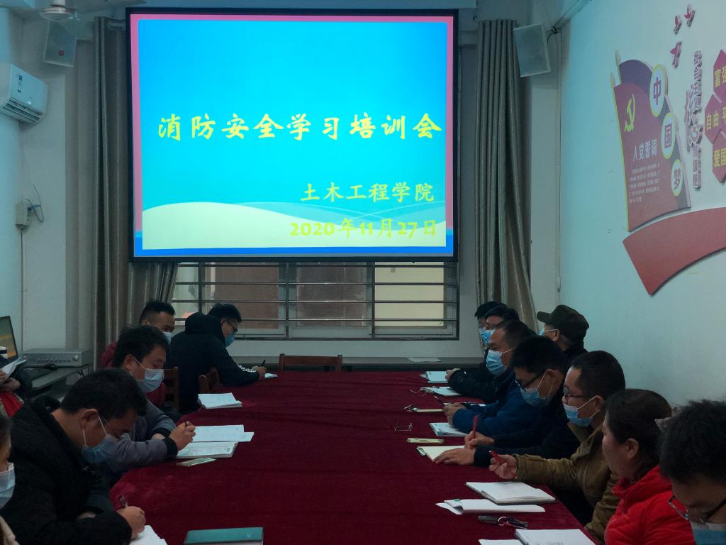 11月27日上午,土木工程学院在理工楼112会议室组织召开了消防安全培训学习会,学院党总支书记郭二军、副院长潘卫国及全体教师参加了学习会议。