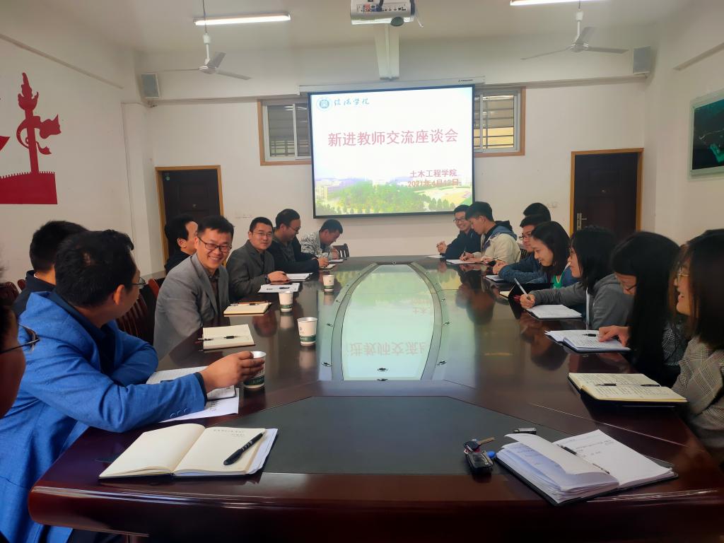 4月12日下午,土木工程学院在理工楼201会议室召开新进教师交流座谈会,校长助理杨高伟出席了会议,学院领导班子及全体新进教师参加了会议。