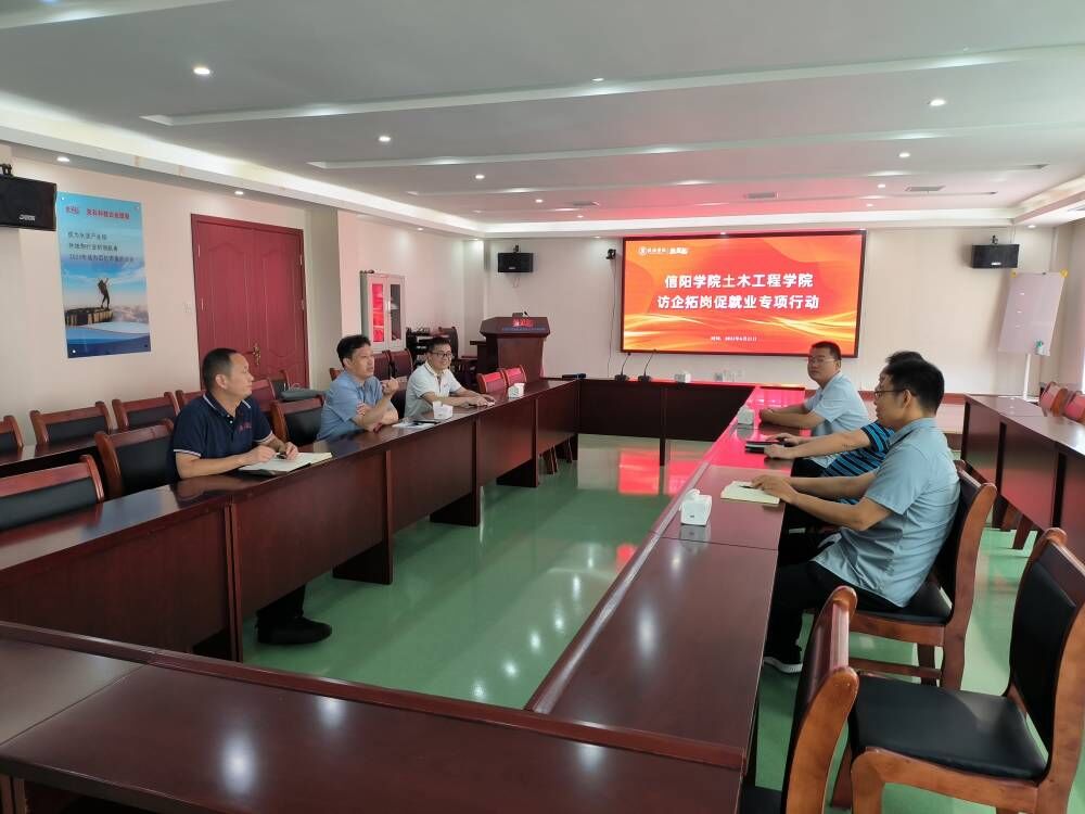 为积极贯彻落实教育部和省教育厅相关指示及文件精神,持续做好访企拓岗促就业专项行动,6月21日上午,土木工程学院名誉院长,党总支书记郭二军,学工干事徐超,团总支书记徐飞一行赴信阳市灵石科技有限公司进行了实地走访,受到了灵石科技有限公司副总经理陈安平,生产经理李森,人事经理胡显明一行的热情接待。