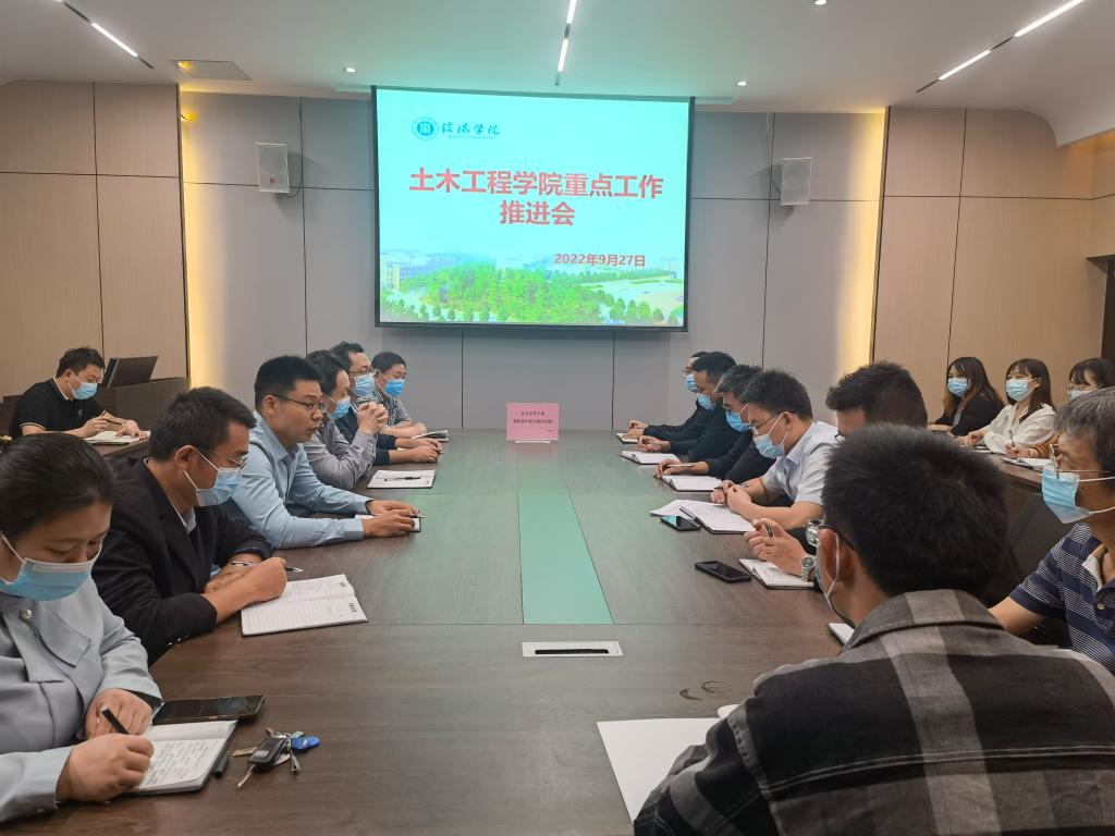9月27日下午,土木工程学院在理工楼112会议室召开了重点工作推进会,学院名誉院长,党总支书记郭二军,教学副院长杨子泉及全体教师参加了本次会议。杨子泉主持了会议。