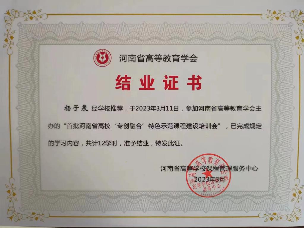3月11日,土木工程学院杨子泉、朱洪涛两位青年教师参加了河南省“专创融合”特色示范课程建设培训会议,此次会议由河南省高等教育学会主办,河南开放大学、河南省高等学校课程管理服务中心承办。来自省内高校300余名教师参加了本次会议。