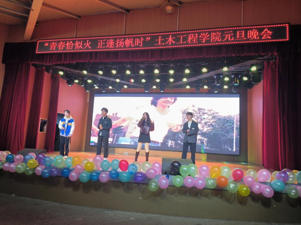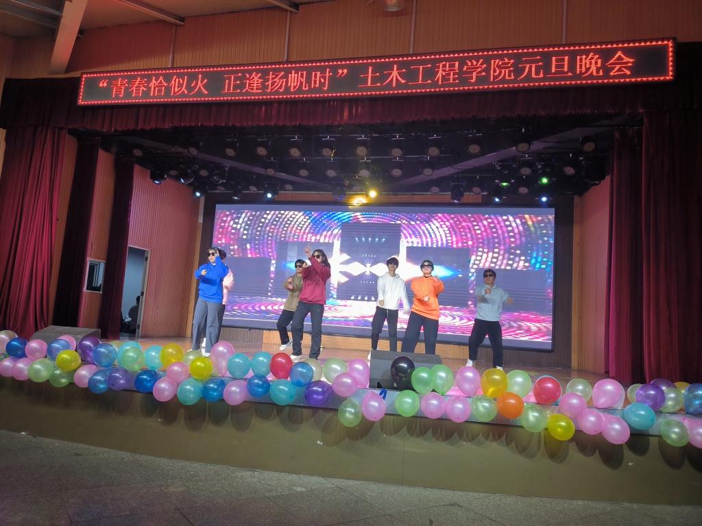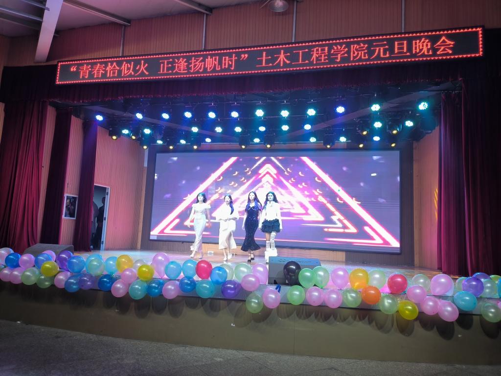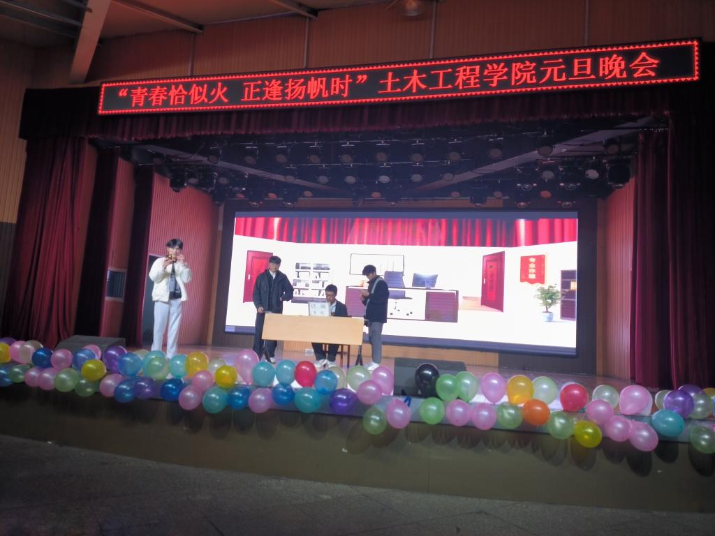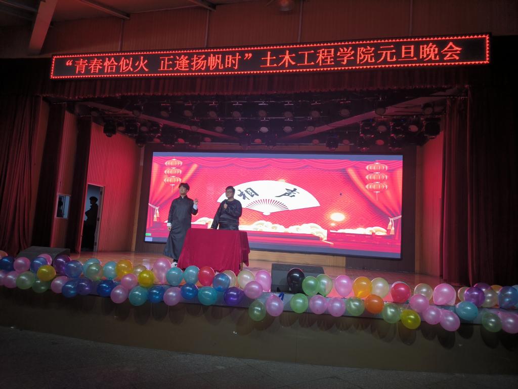 为陶冶情操,丰富同学们校园文化生活,12月20日晚19:00,土木工程学院在大学生活动中心举办了2024年“青春恰似火正逢扬帆时”元旦晚会。学院名誉院长、党总支书记郭二军、教学副院长杨子泉、教师代表及500余名学生共同观看了晚会。