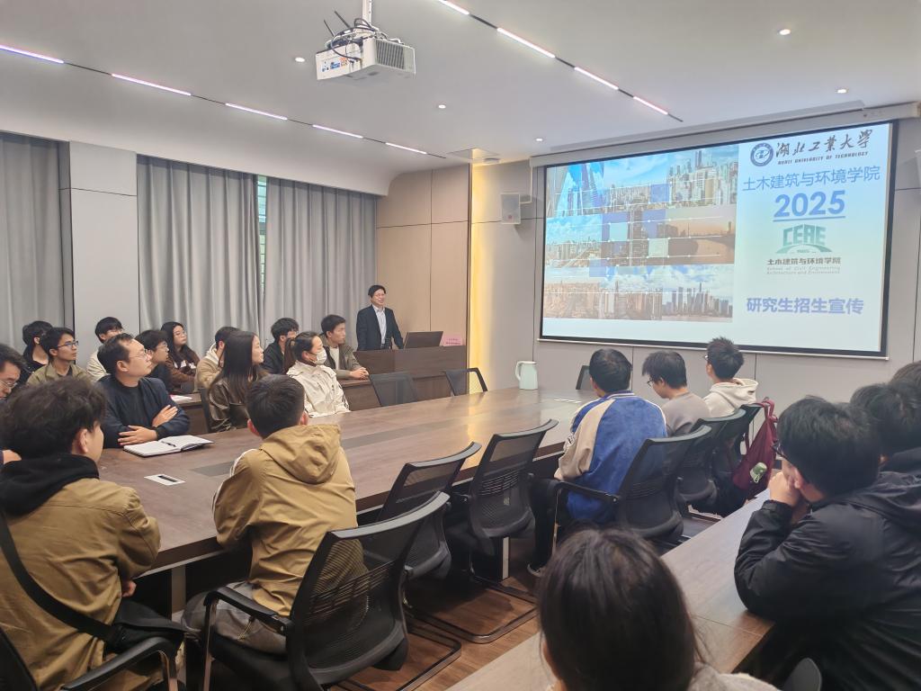 为了帮助我院学生更好地备考2025年的研究生入学考试,解答同学们报考湖北工业大学时在科目选择、考研时间规划以及课程复习过程中的疑惑。10月20日下午,湖北工业大学土木建筑与环境学院的苏骏教授来到太阳集团土木工程学院,在理工楼112会议室举行了一场考研宣讲会。土木工程学院教学副院长杨子泉、学工干事徐超及部分意向考研学生参加了此次宣讲会。杨子泉主持了宣讲会。