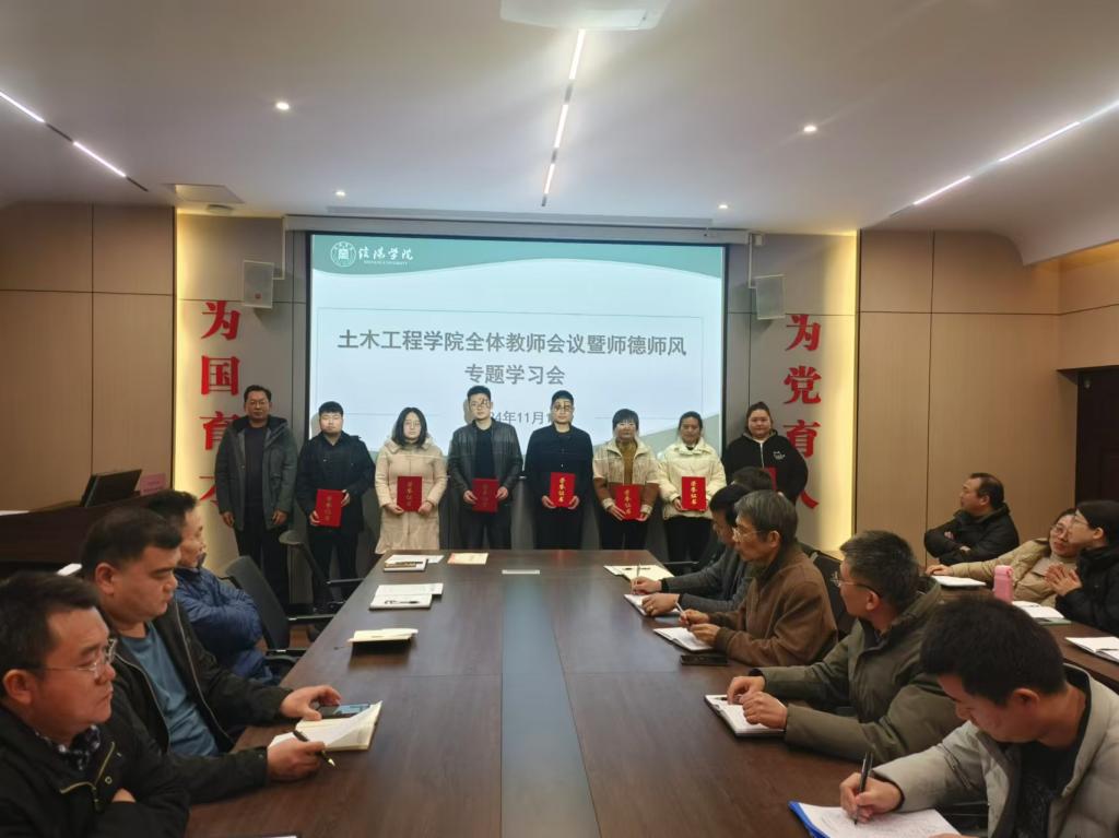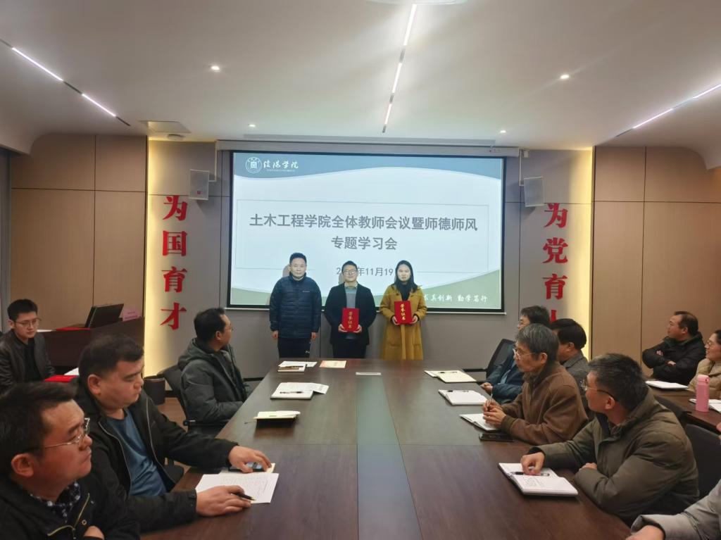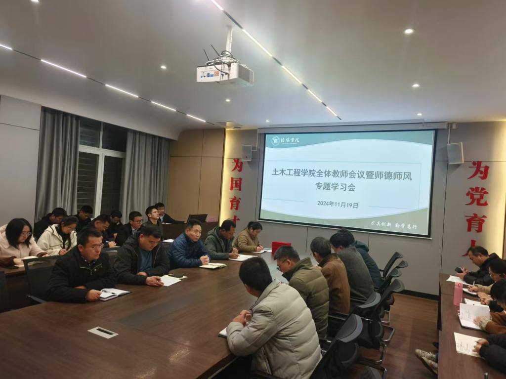 11月19日下午,土木工程学院在理工楼112会议室召开了全体教工会议暨师德师风专题学习会。学院领导班子以及全体教工参加了会议,会议由党总支书记徐远东主持。